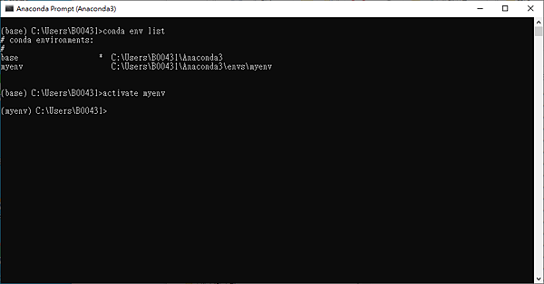 此外忘記你有多少的虛擬環境可以用conda env list來查看現有環境清單!
