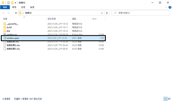 (1) 你會發現你打包失敗的檔案有一個.spec檔