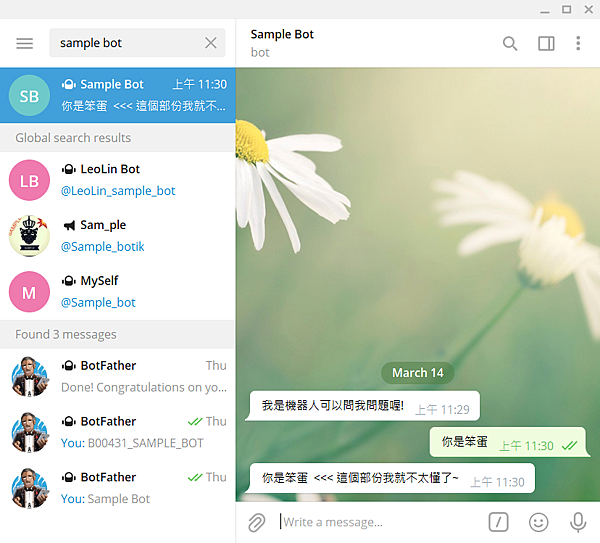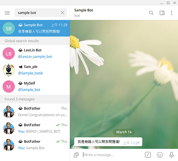 步驟一:在Telegram搜尋欄輸入BotFather並打開