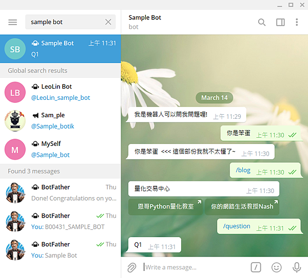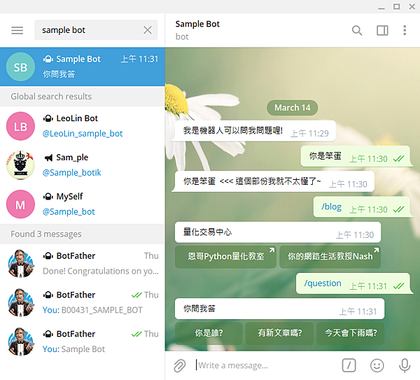 改造你的Telegram Bot(進階應用):讓機器人可以做更多事情,回答選單、過濾訊息回答、問題與答覆、主動與對象發話