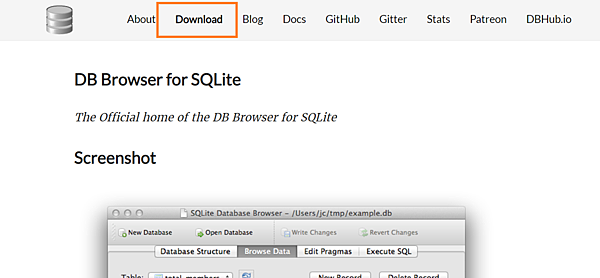 首先,先到 https://sqlitebrowser.org/ 來下載DB Browser for SQLite,介面化你的資料庫,可以直接透過使用者介面很直觀的看見SQLite資料庫裡面放了什麼!這邊先介紹下載及基本用法,後續再為大家更新DB Browser for SQLite進階用法。