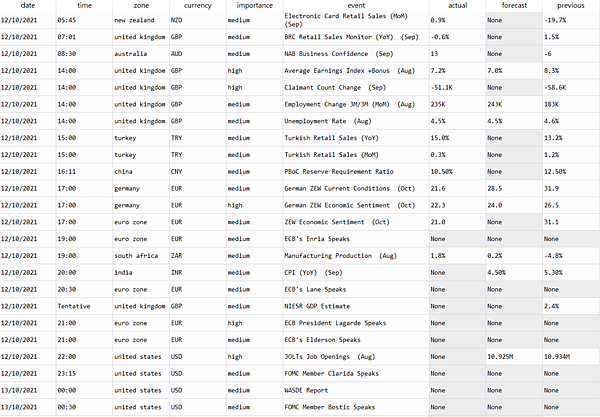 importances:放你要取得的經濟數據重要程度,這個重要程度是invest.com定義的,我們可以給一個list放high、medium、low即可