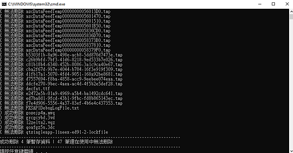 $"成功刪除 { nCountO.ToString()} 筆暫存資料 | { nCountX.ToString()} 筆還在使用中無法刪除 \n" +